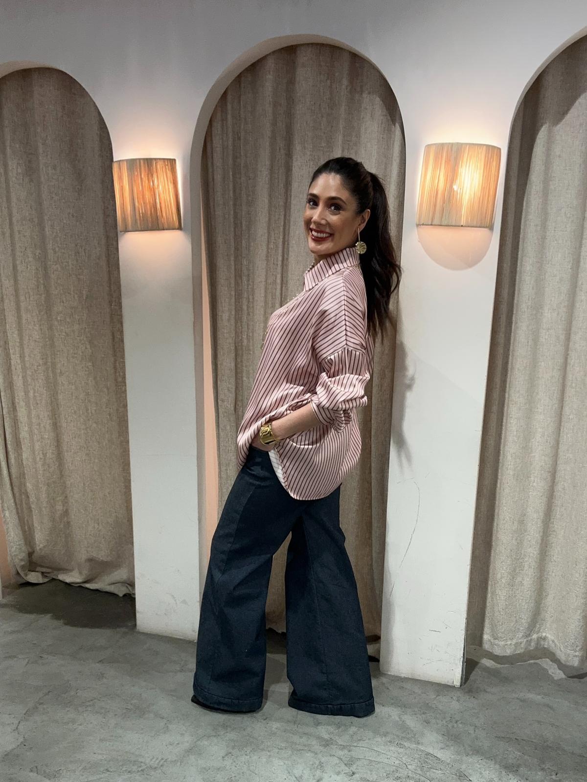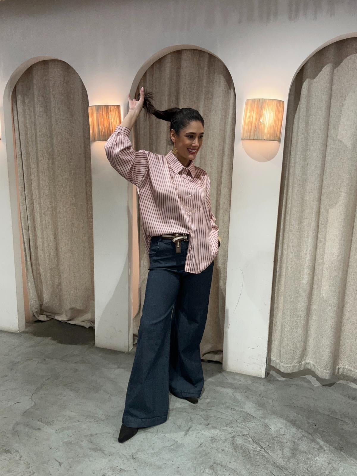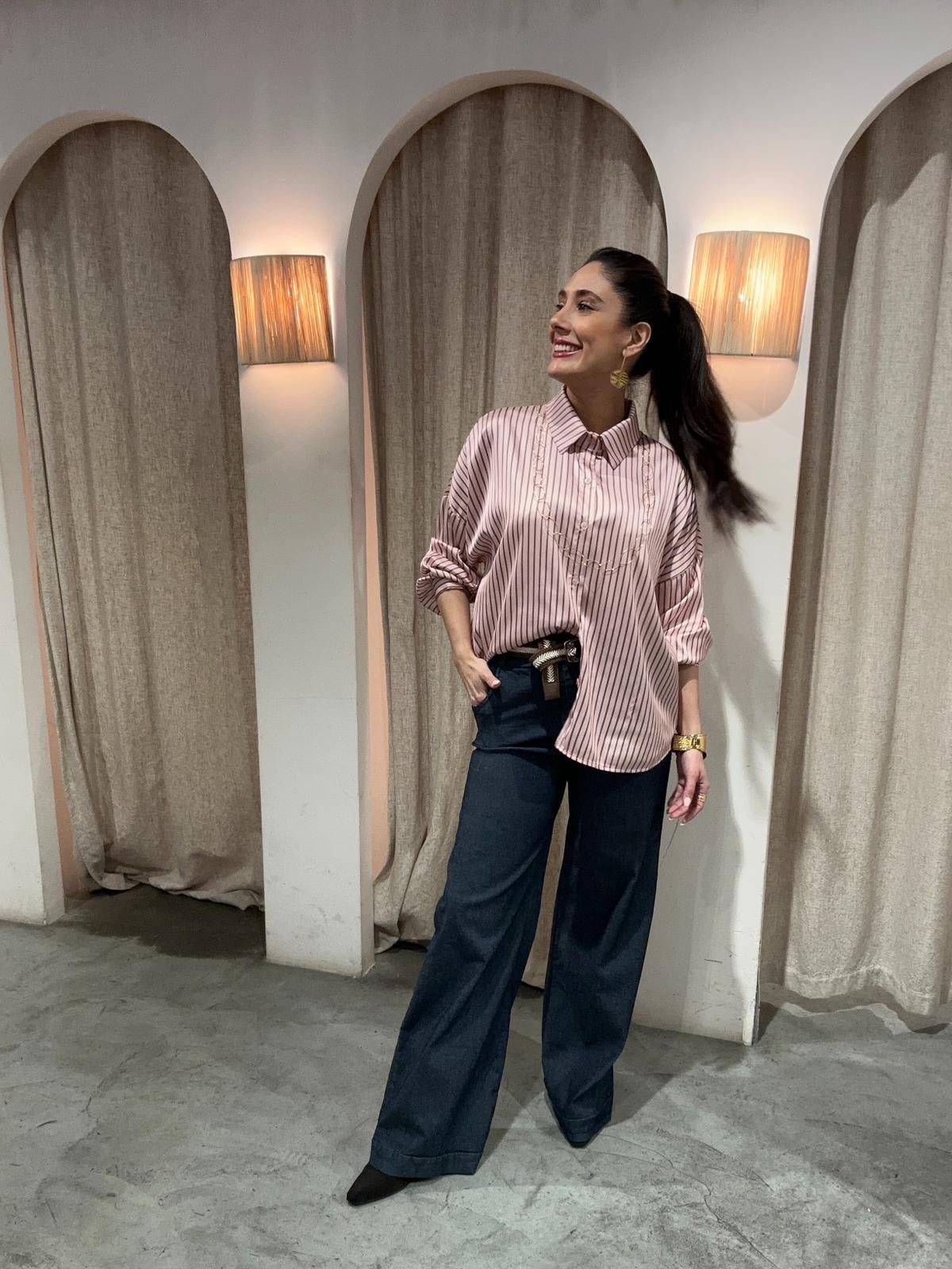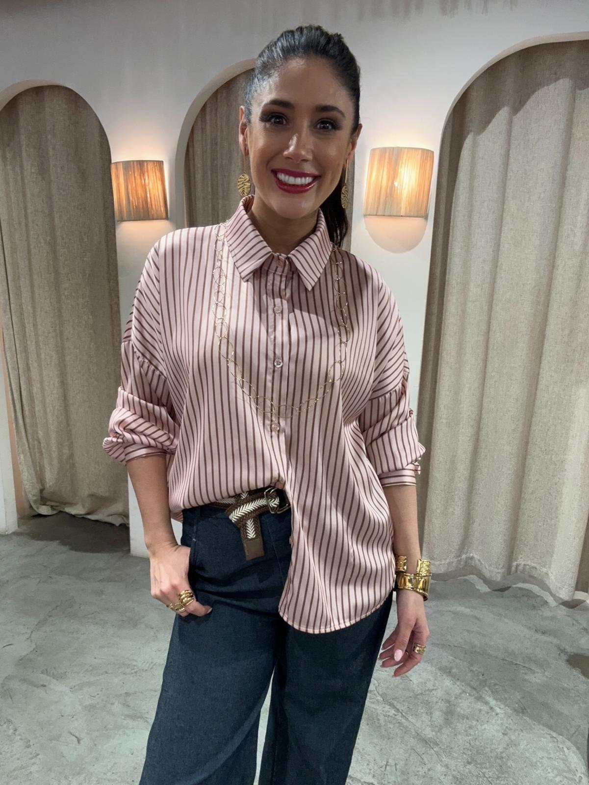 Camisa de satén, raya ancha