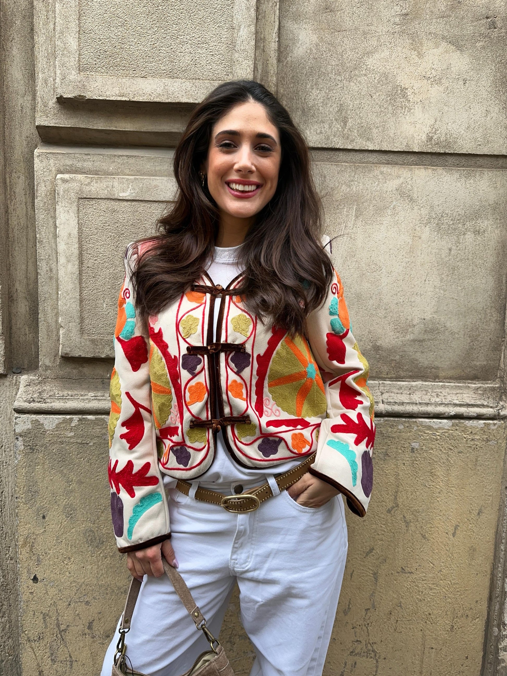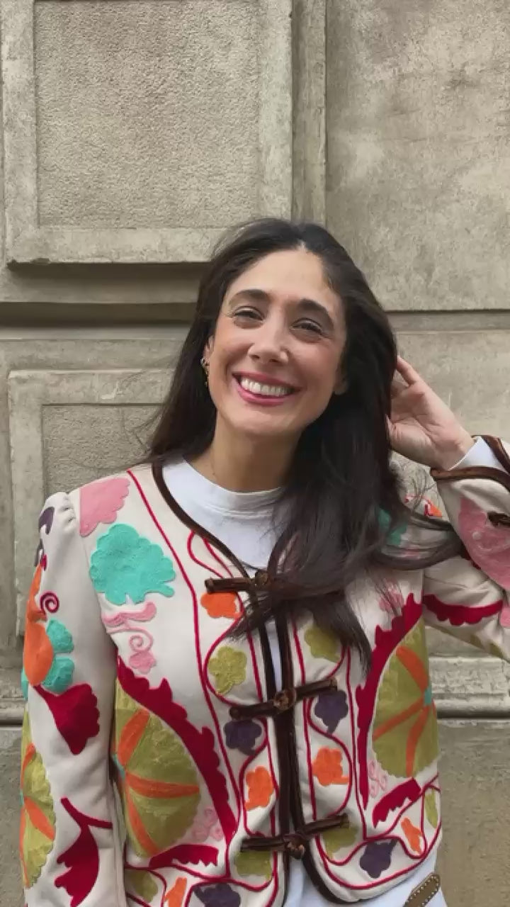 Chaqueta bordada con motivo floral.