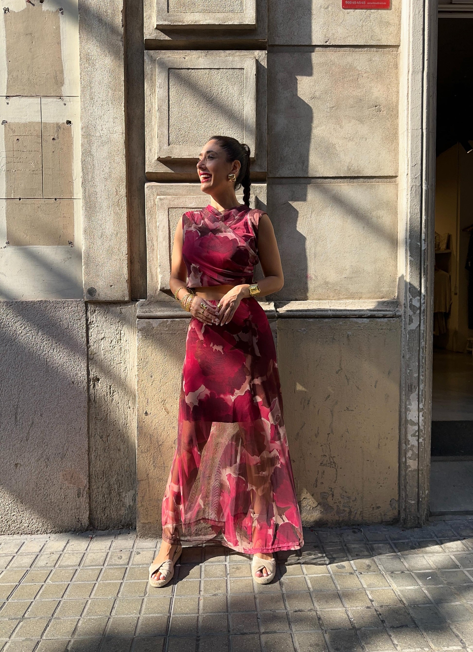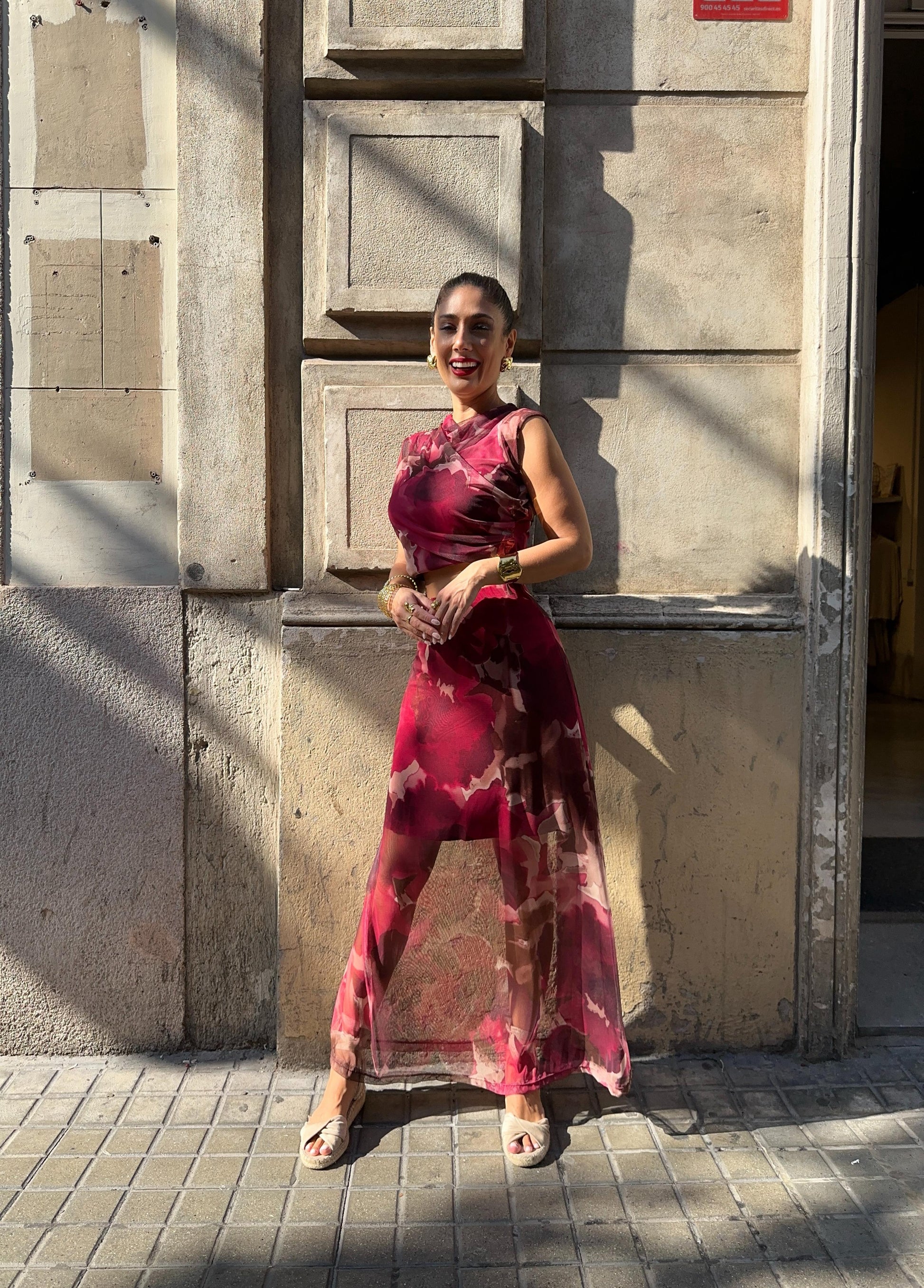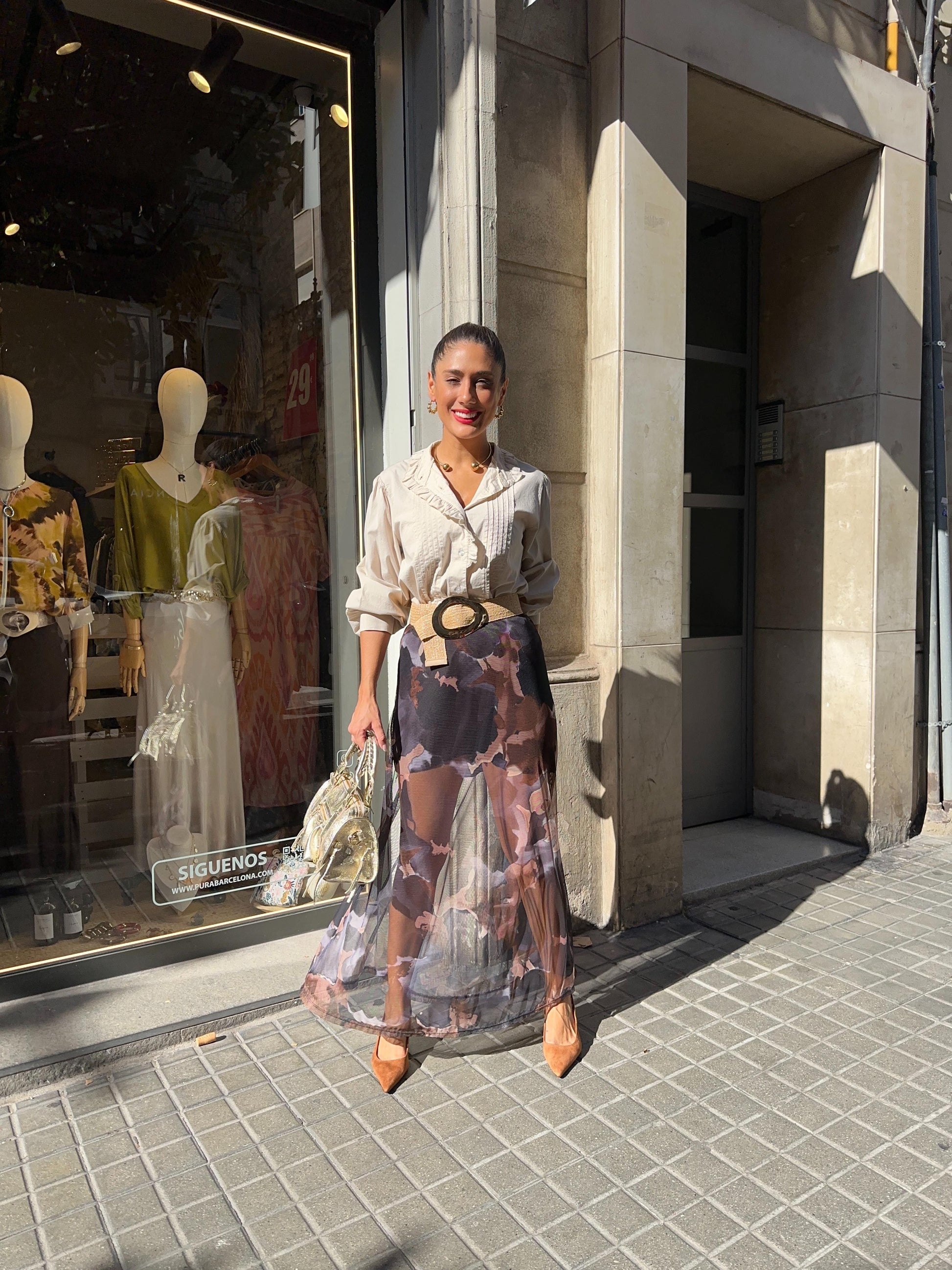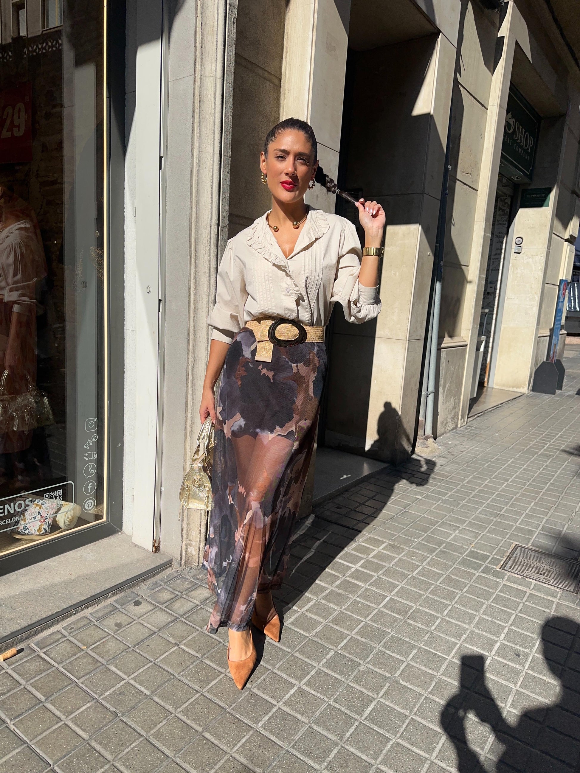 Falda Midi de tul, estampada
