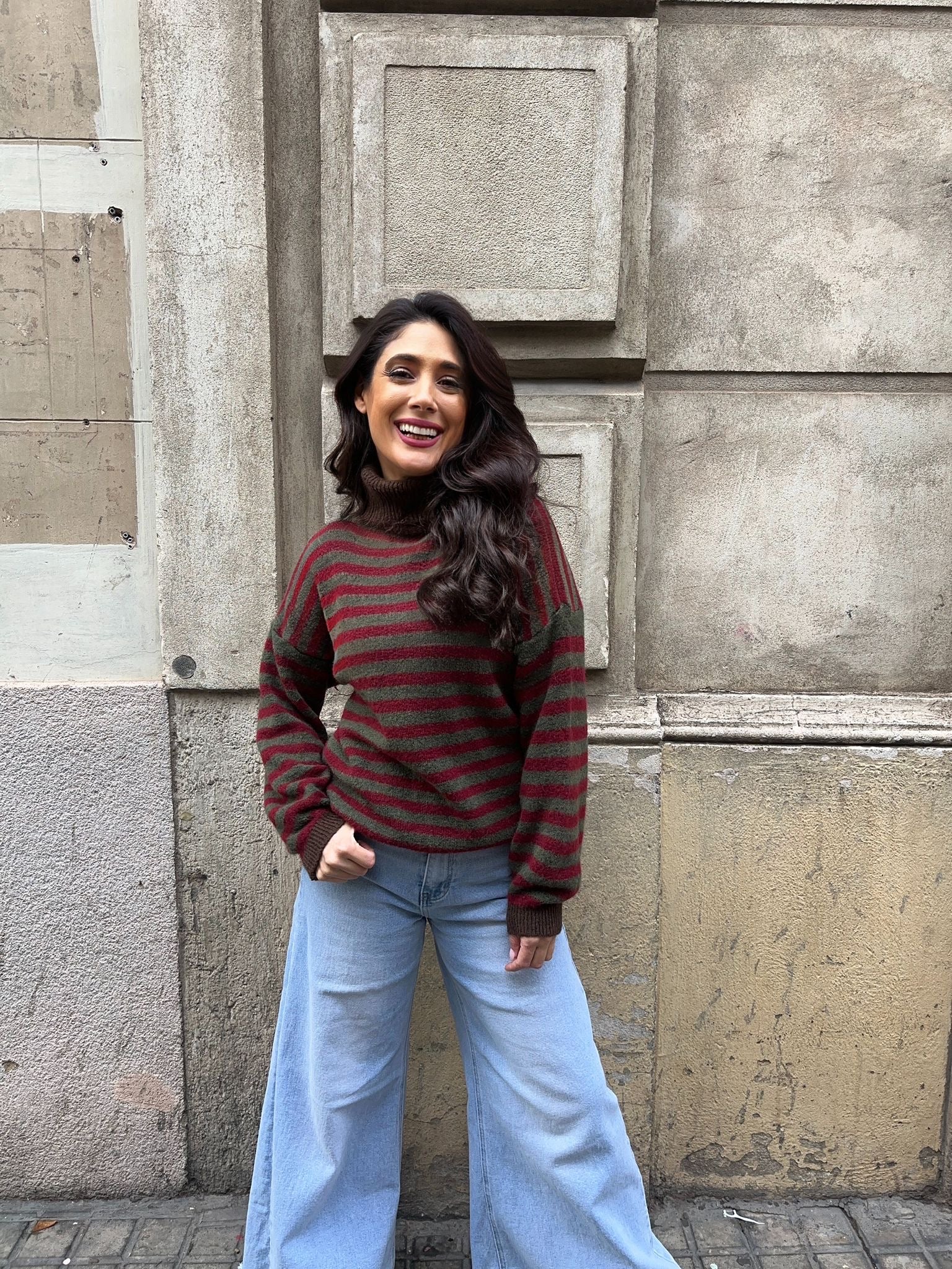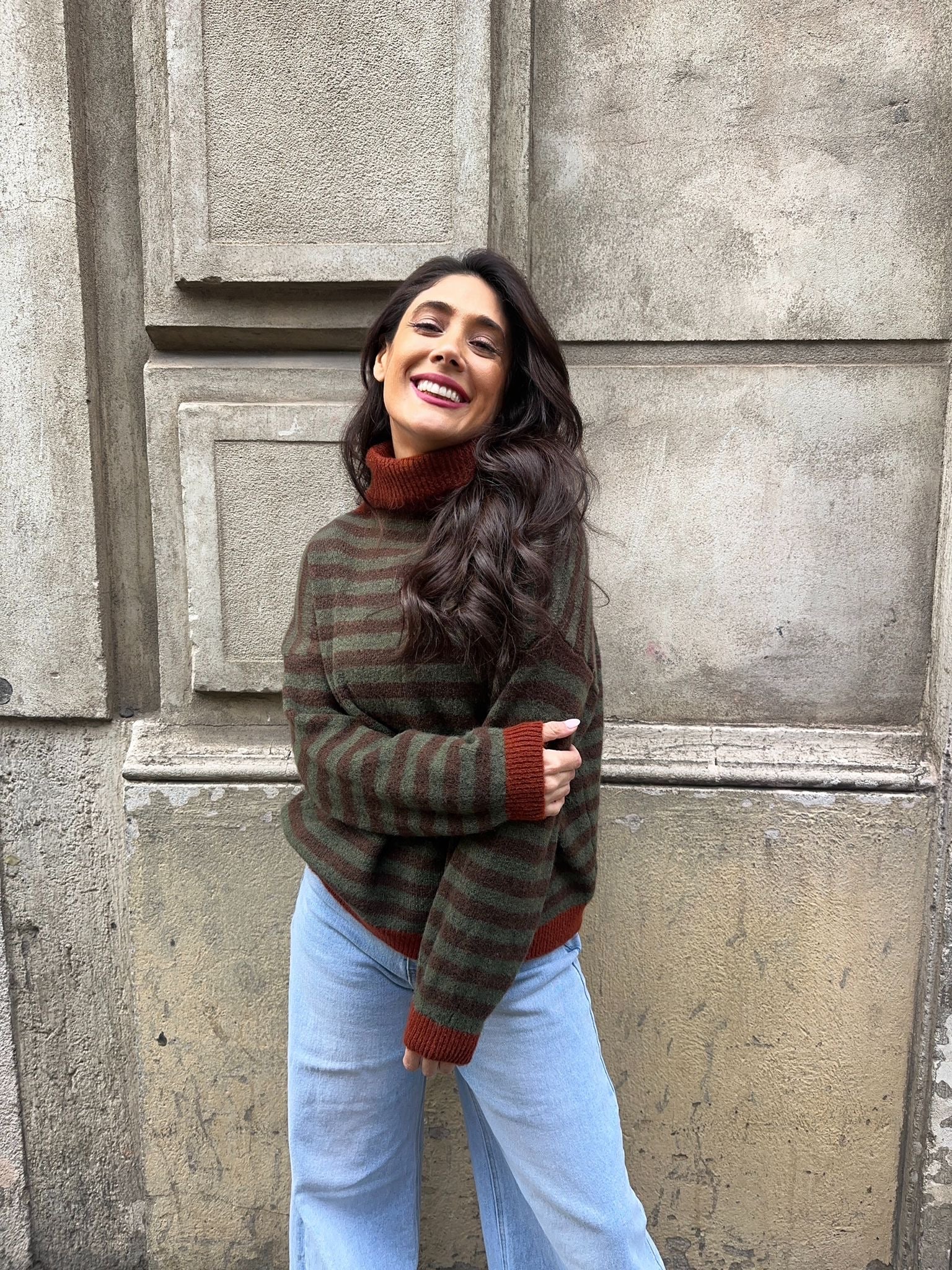 Jersey rayado cuello alto bicolor