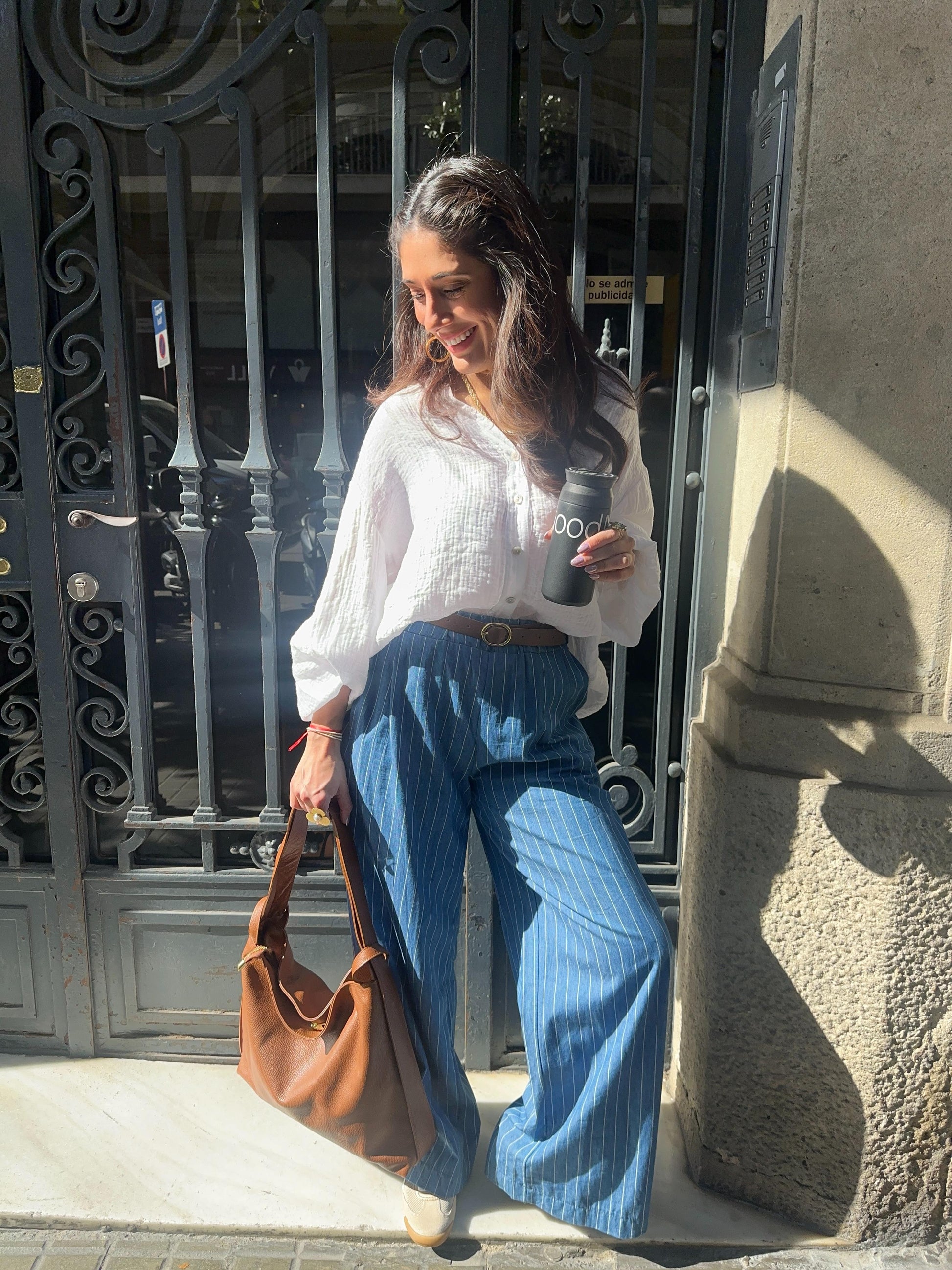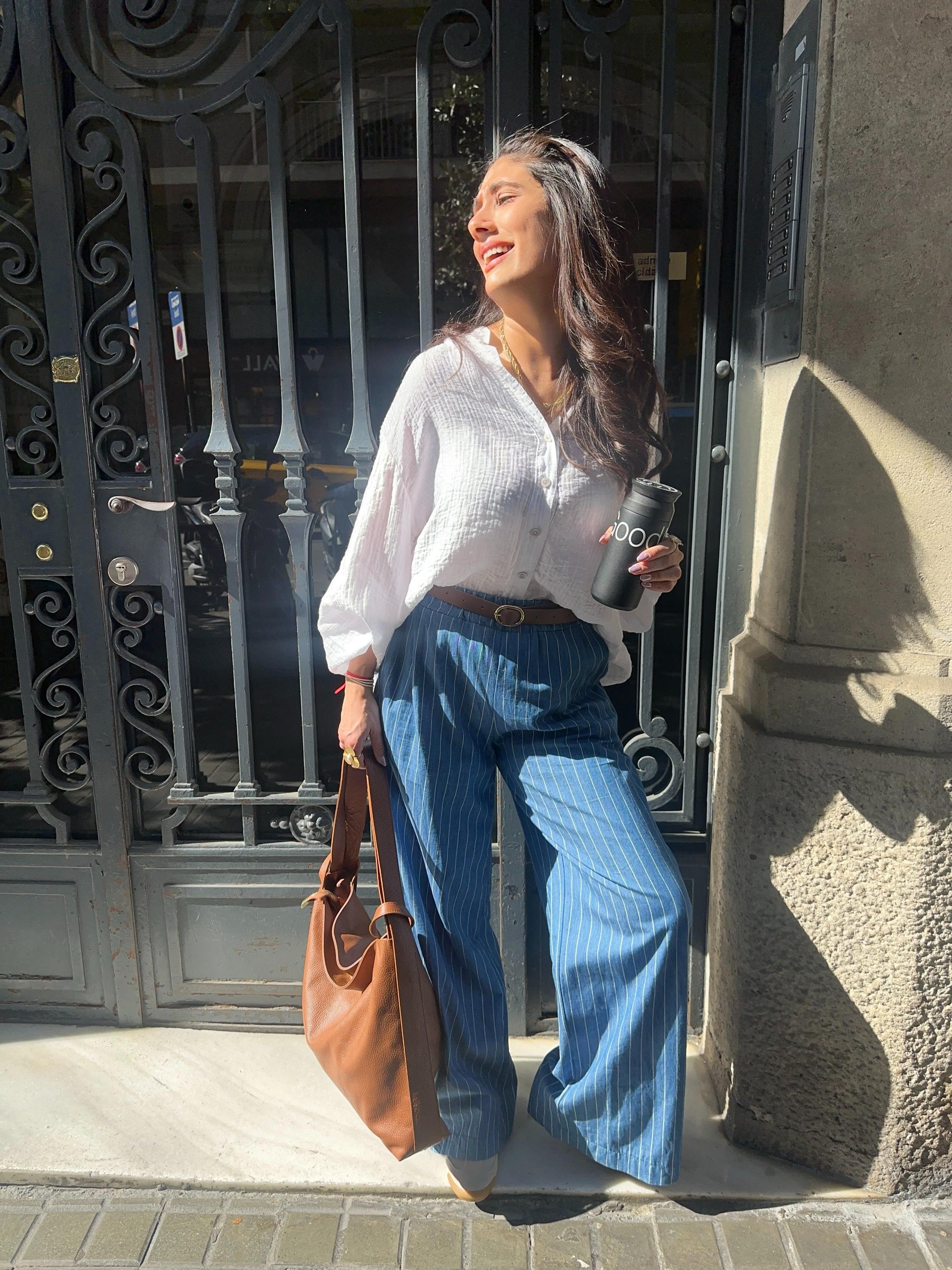 Maxi camisa de seda arrugada, cuello mao, botones nácar.