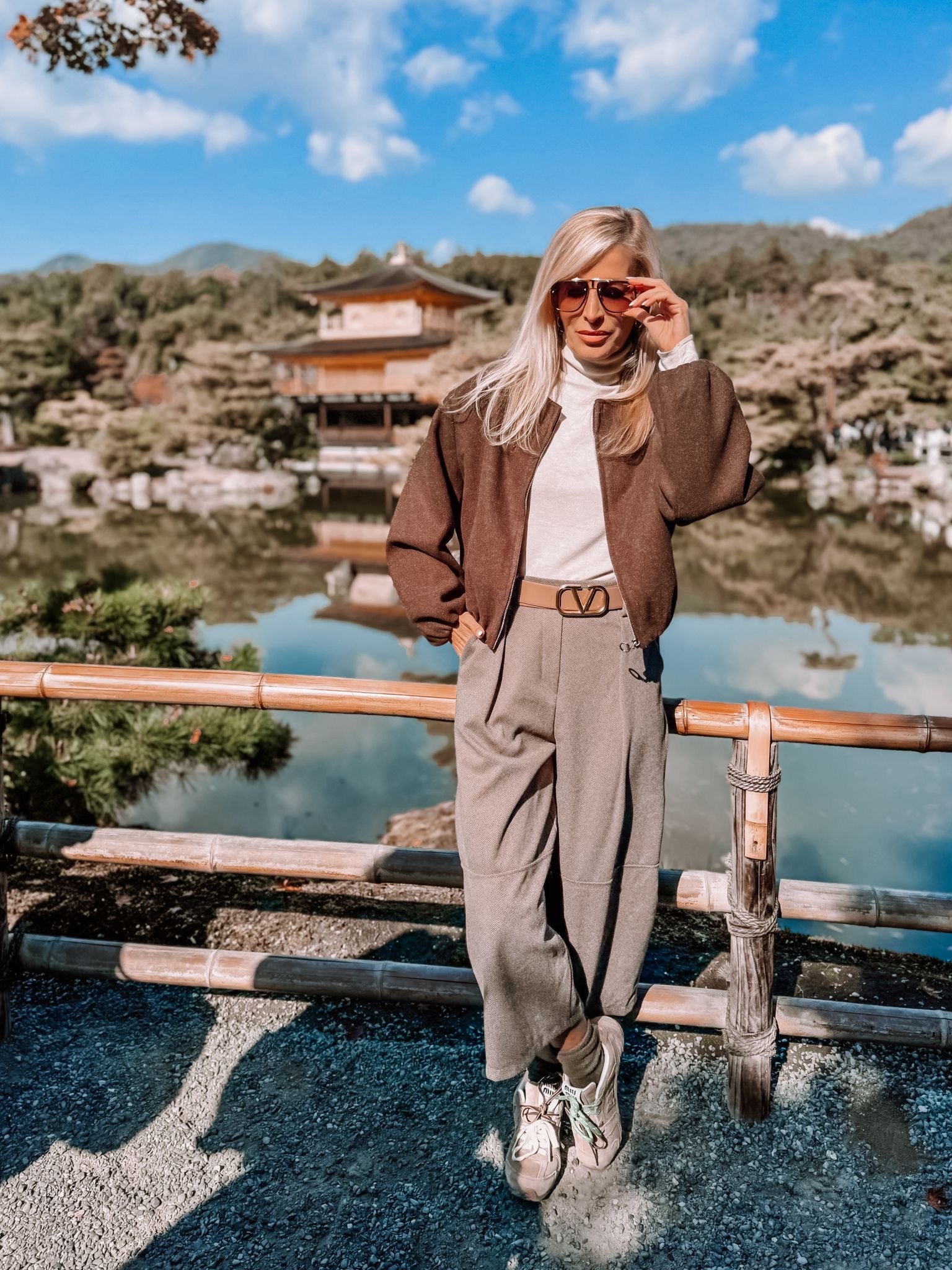 Pantalón globo, espiga, con cinturón