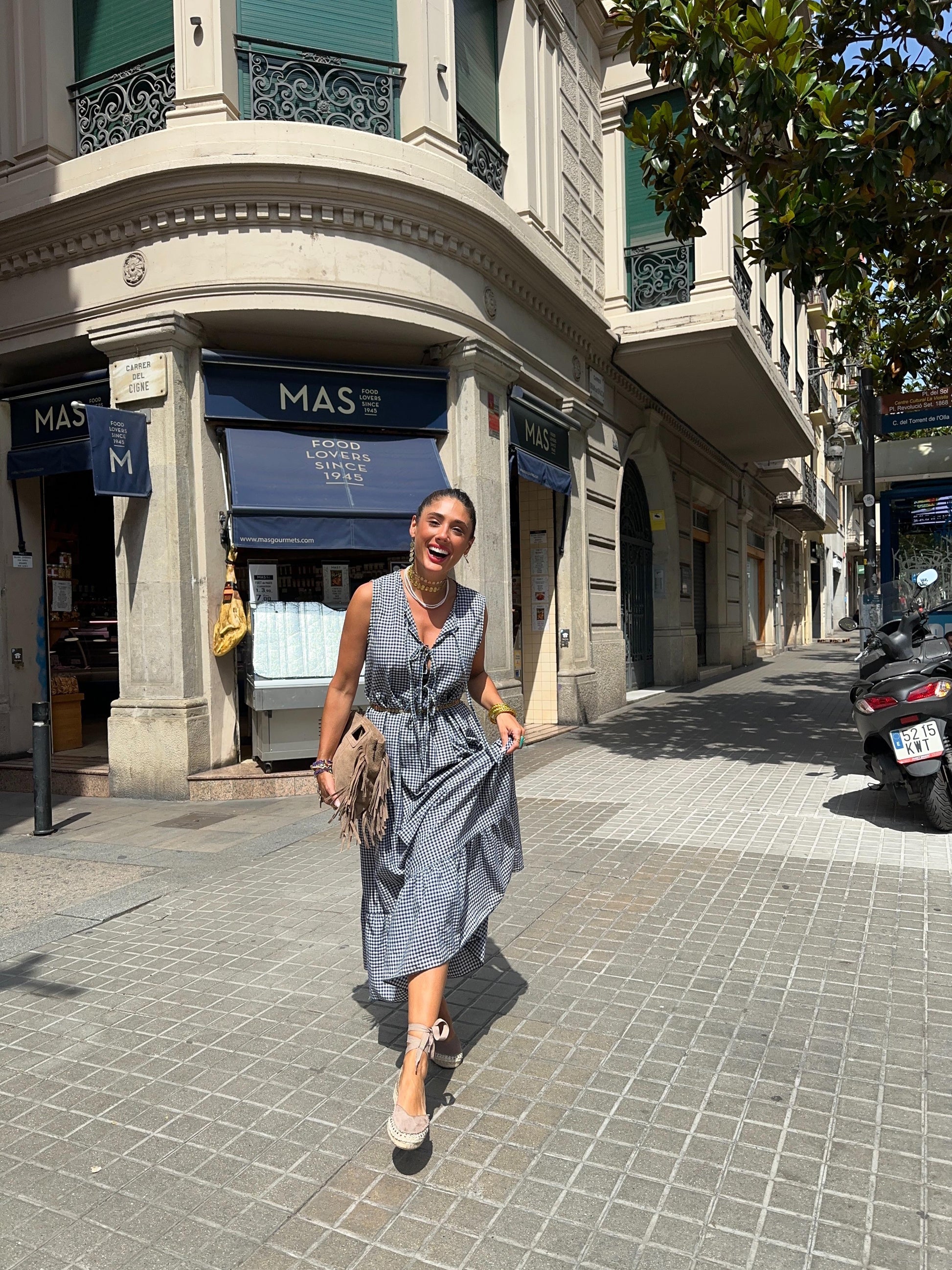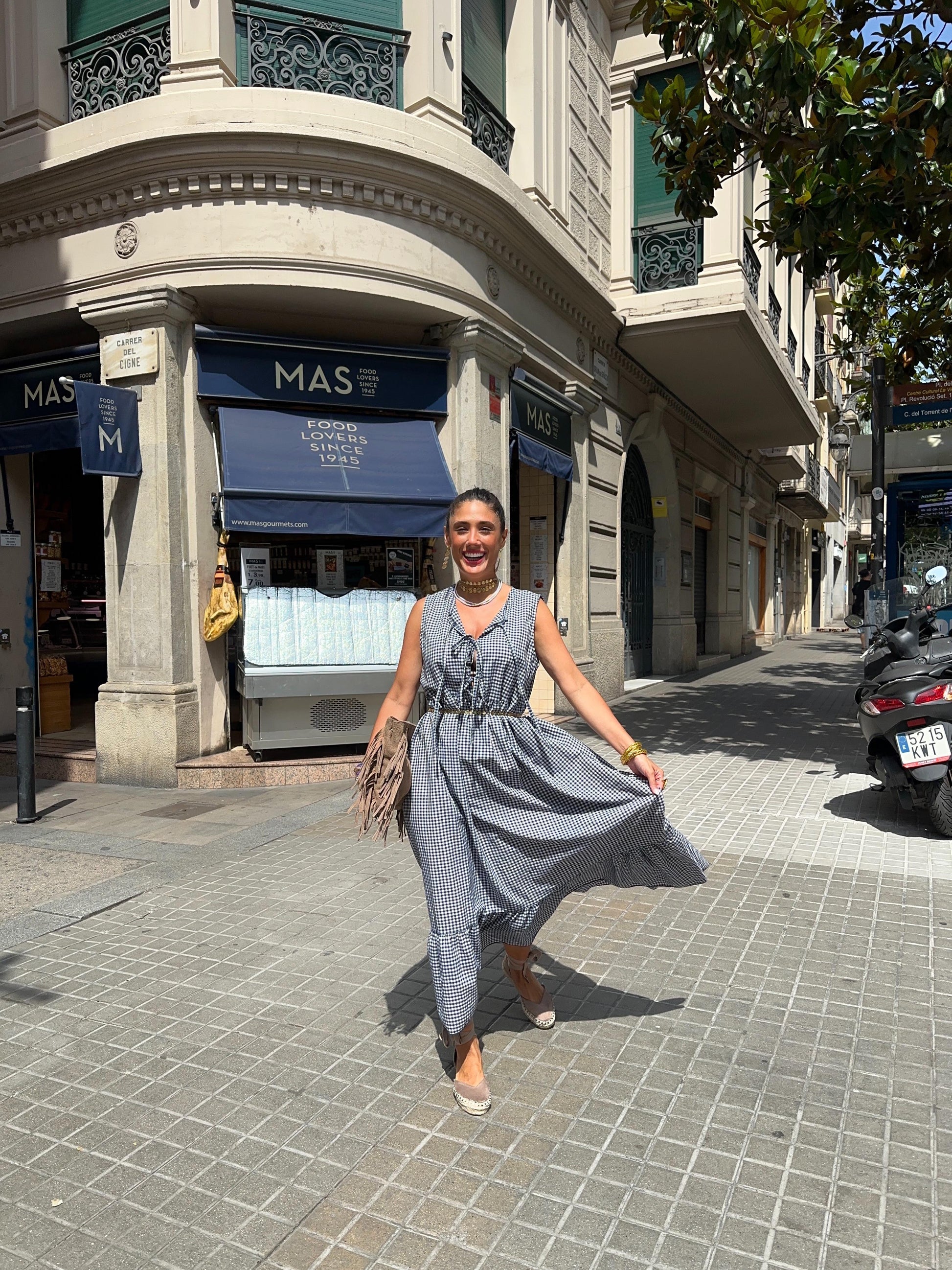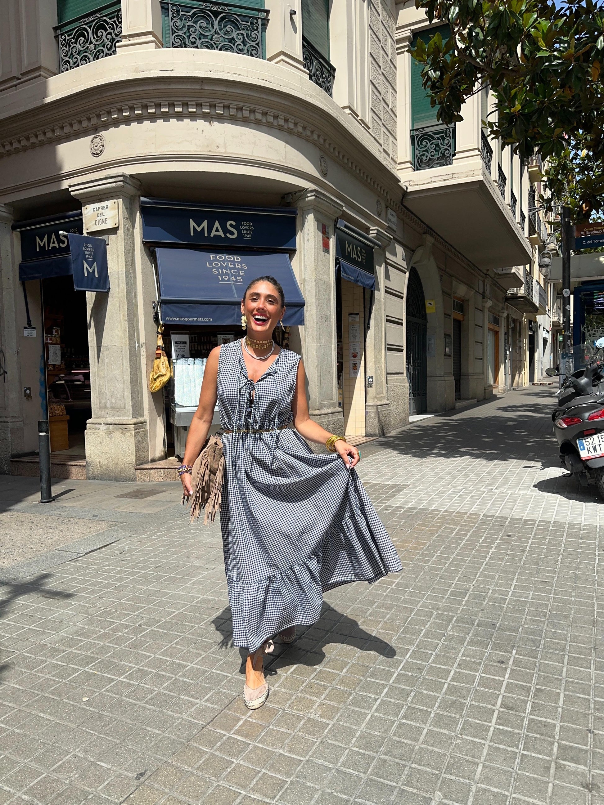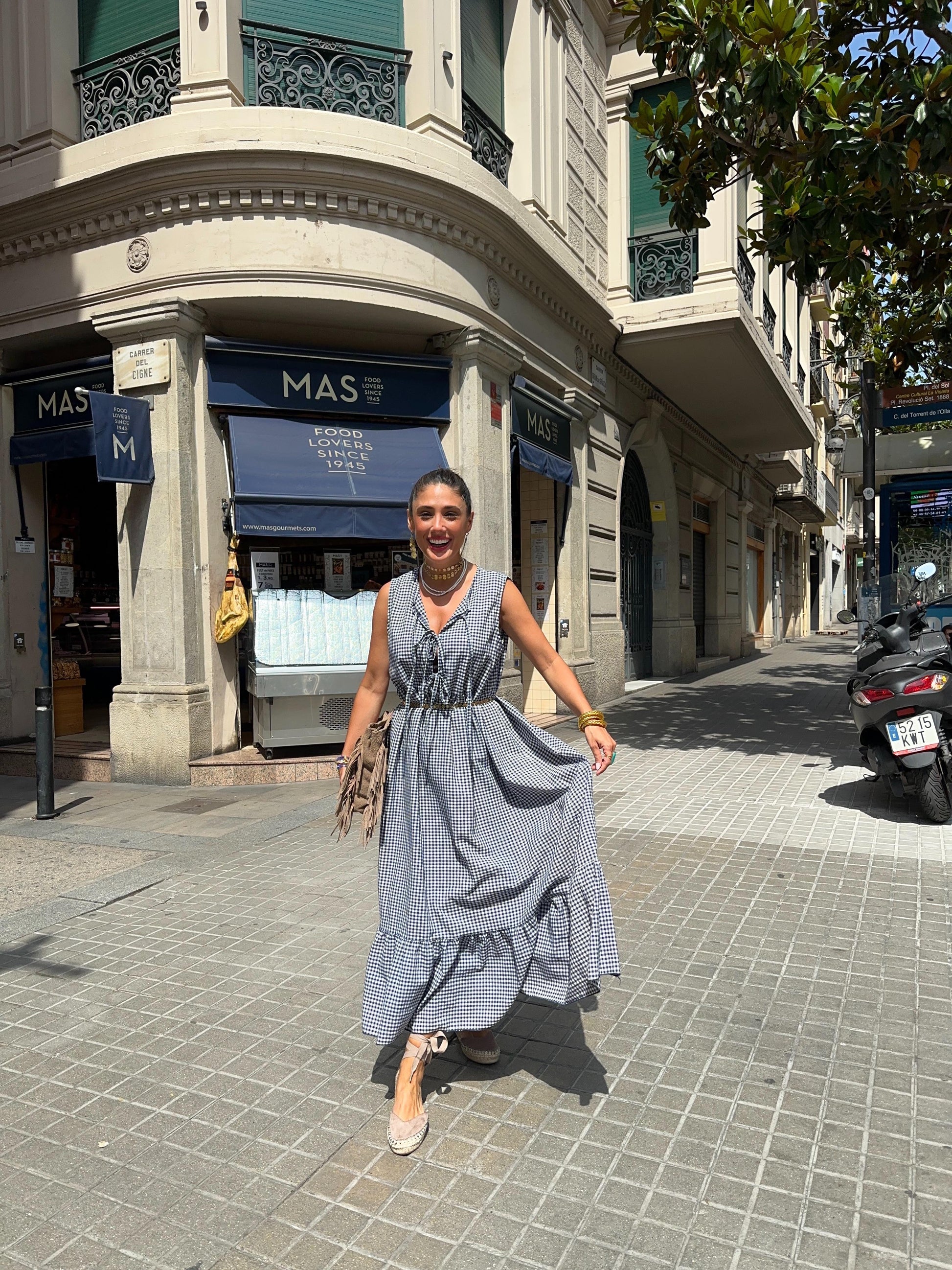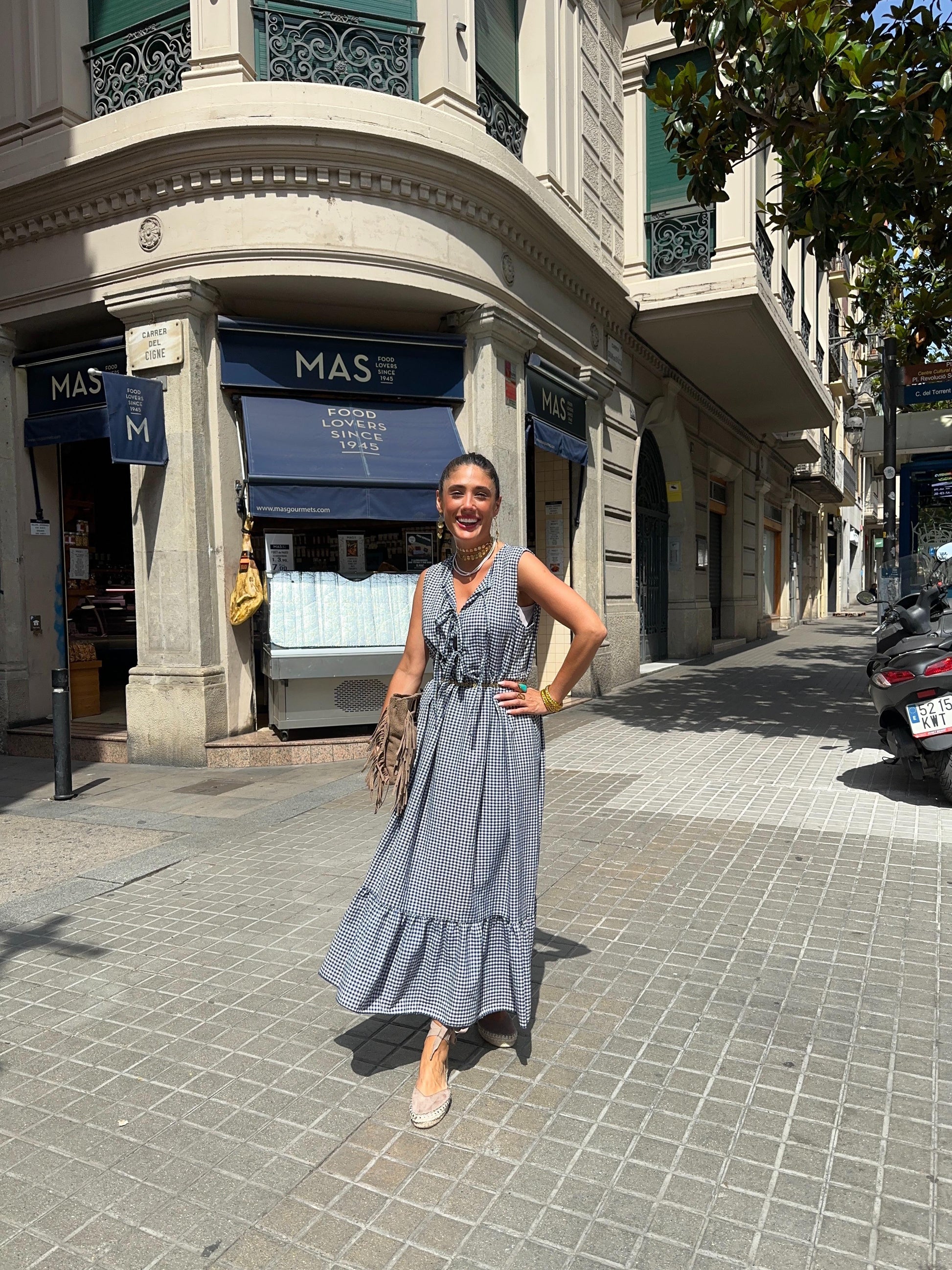 Vestido sin manga Vichy, 3 lazos